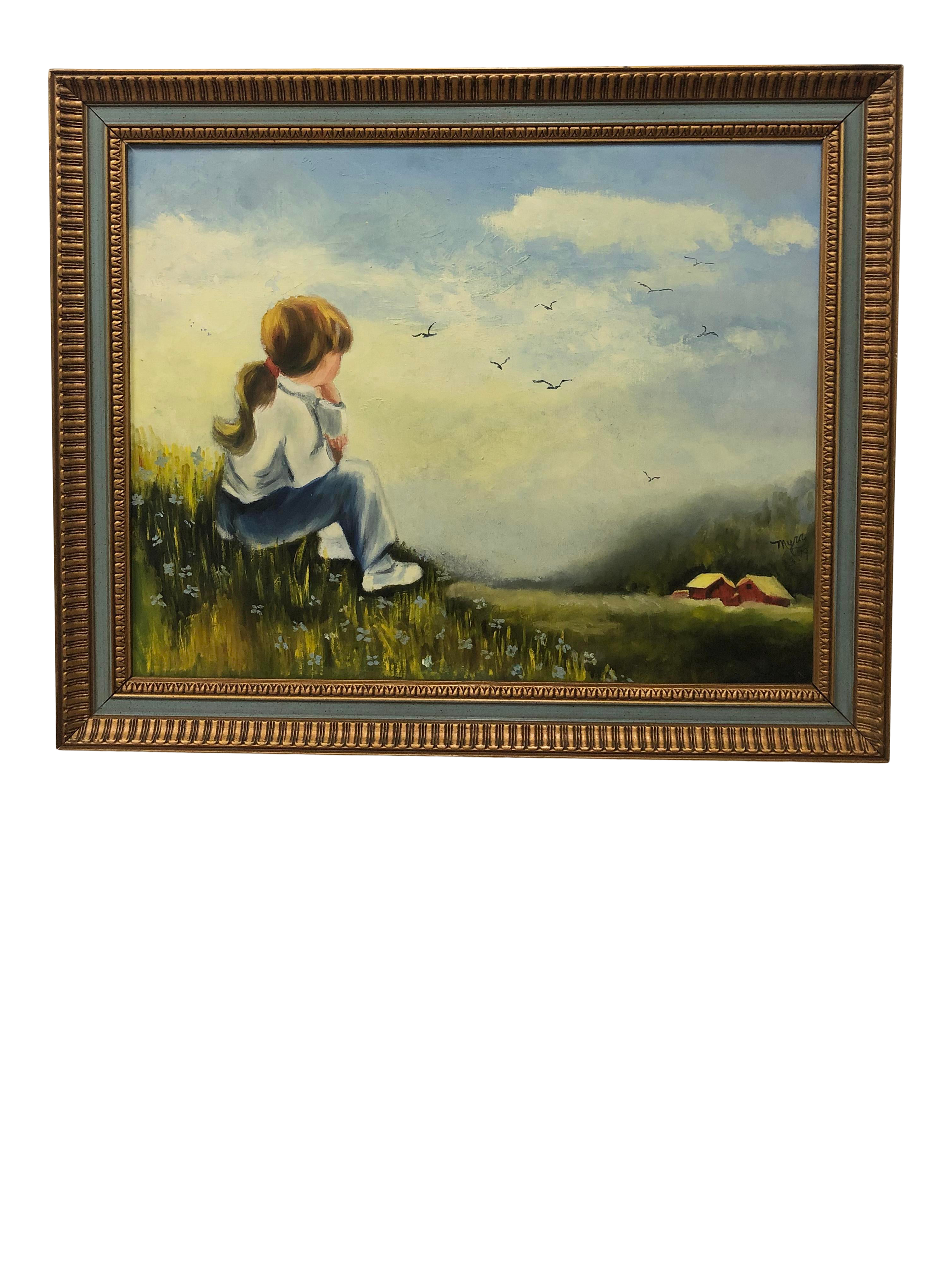 1970s Large Vintage Child Landscape Original Oil Painting Signed Framed Chairish